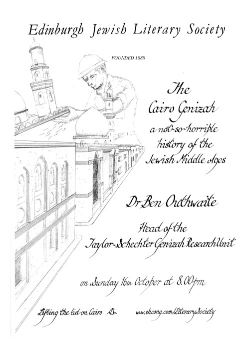 Comments Off on Meeting opening the 5772 session: 16 October 2011, ‘The Cairo Genizah: A not-so-horrible history of the Jewish Middle Ages’, Dr Ben Outhwaite, Cambridge