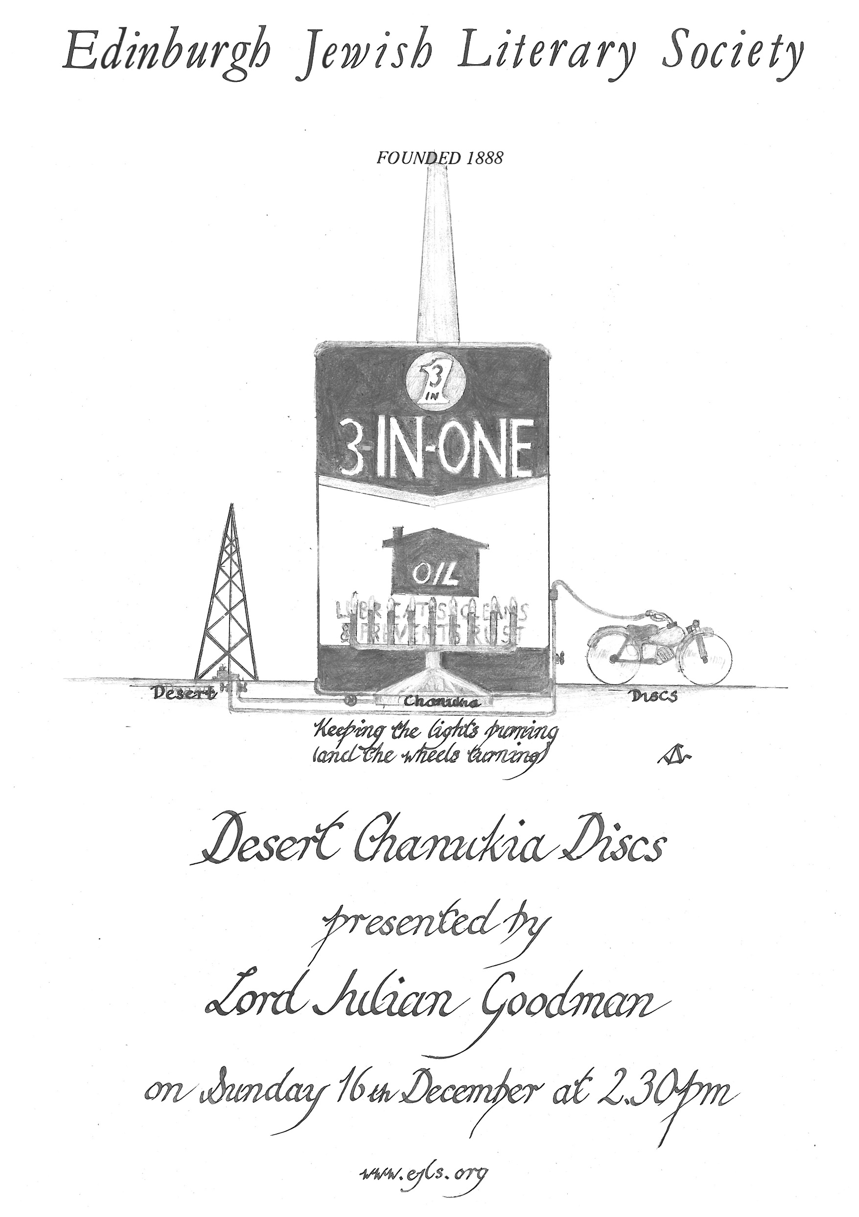December 16th 2012: End of Chanukah event – ‘Desert Chanukia Discs’ to be presented by Lord Julian Goodman
