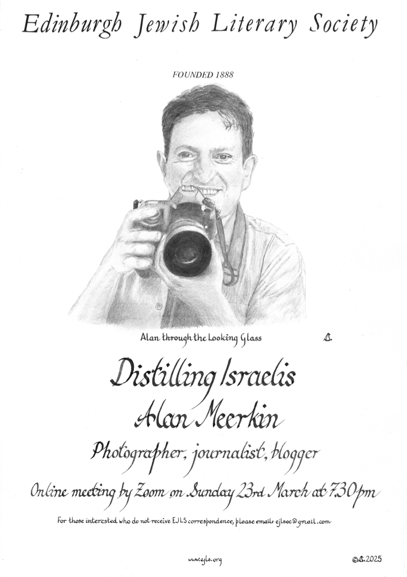 Israeli photographer and journalist Alan Meerkin will discuss the nuances of everyday life in Israel through street photography. This will include material from his book ‘Distilling Jerusalem: Portraits of the City at Many Given Moments’. In addition, Alan will present images examining the feeling in the street, in Israel and abroad, in the face of current challenges.