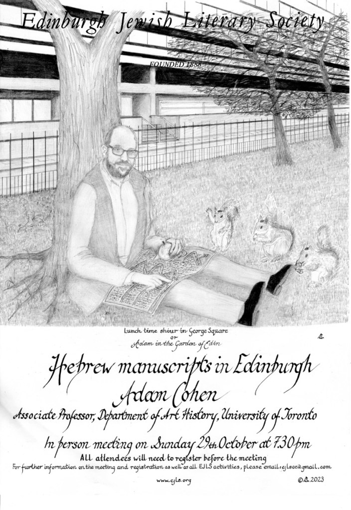 The National Library of Scotland and the Centre for Research Collections at the University of Edinburgh are outstanding repositories of cultural heritage. Although they constitute a miniscule percentage of their holdings, handwritten Hebrew manuscripts in both institutions offer a fascinating glimpse into the history of Jewish literary and artistic culture as well as something of the history of Jews in Scotland. In this talk, I introduce the entire range of these materials, which span over seven hundred years from the fourteenth to the twentieth century. Of particular interest will be the light that these works shed on the interaction of Jews and Christians; we will meet medieval scribes, Renaissance censors, early modern bookbinders, Karaites, Scottish Hebraists, artists, rabbis, and journalists. Because of my own background as a historian of medieval art, I will pay particular attention to the visual aspects of selected materials, which reveal some unexpected surprises.