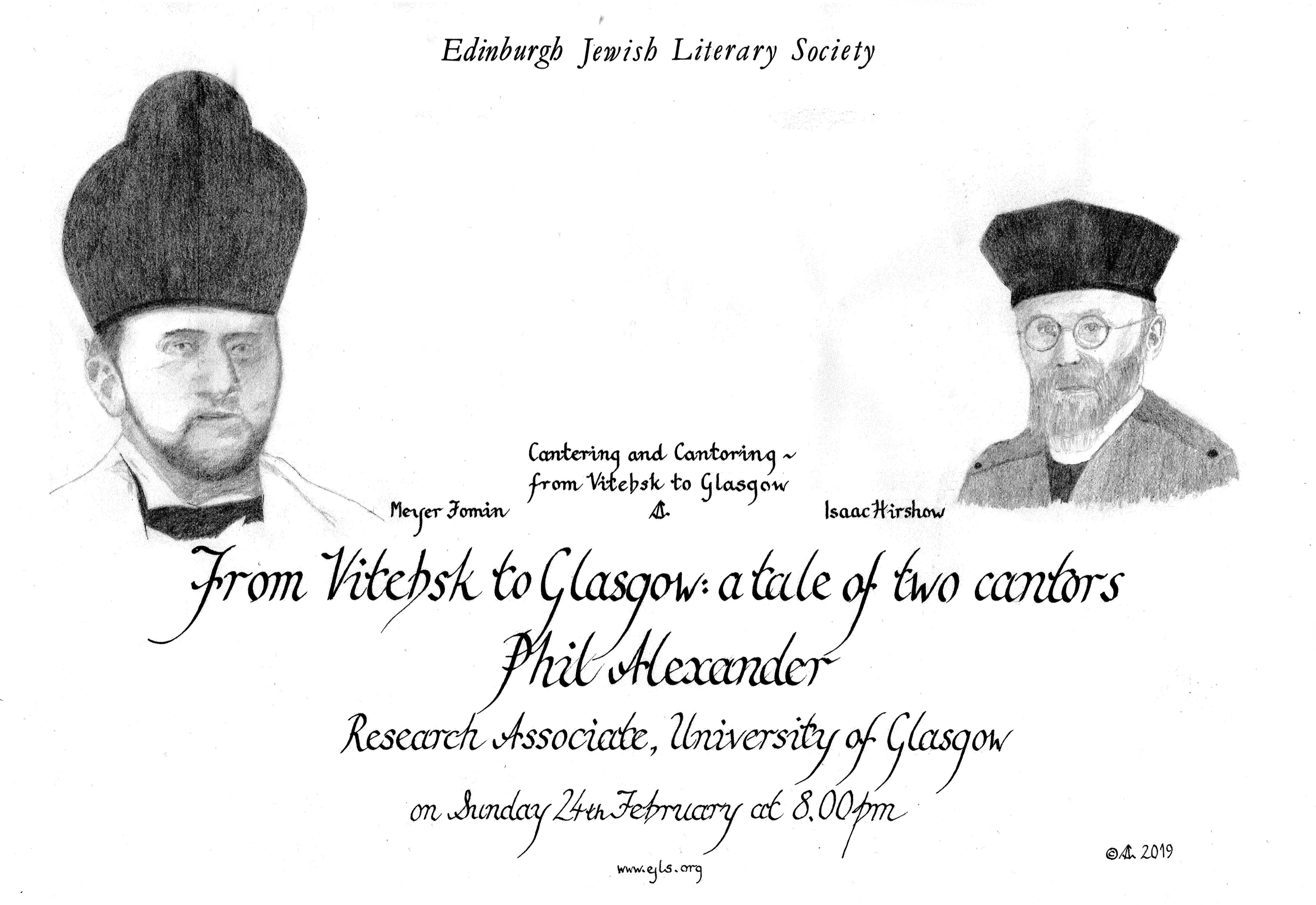 Phil will talk about two important figures of Scottish Jewish music: Meyer Fomin and Isaac Hirshow. Both men were born in Vitebsk in the 1880s, both trained in Warsaw, and both moved with their families to Glasgow at the beginning of the 1920s, where they would remain for the rest of their lives. The first part of this talk will concentrate on these two cantors as part of early 20th century Eastern Europe’s lively Ashkenazi musical life, where their careers spanned liturgical music, Yiddish song and classical performance. We will then listen to and discuss some of their work upon arriving in Scotland, looking at how much this musical material represents the East of their birth and training, and in what ways it reflects their new immigrant identities.